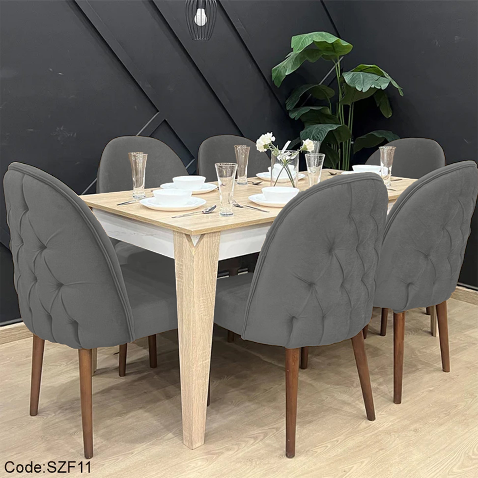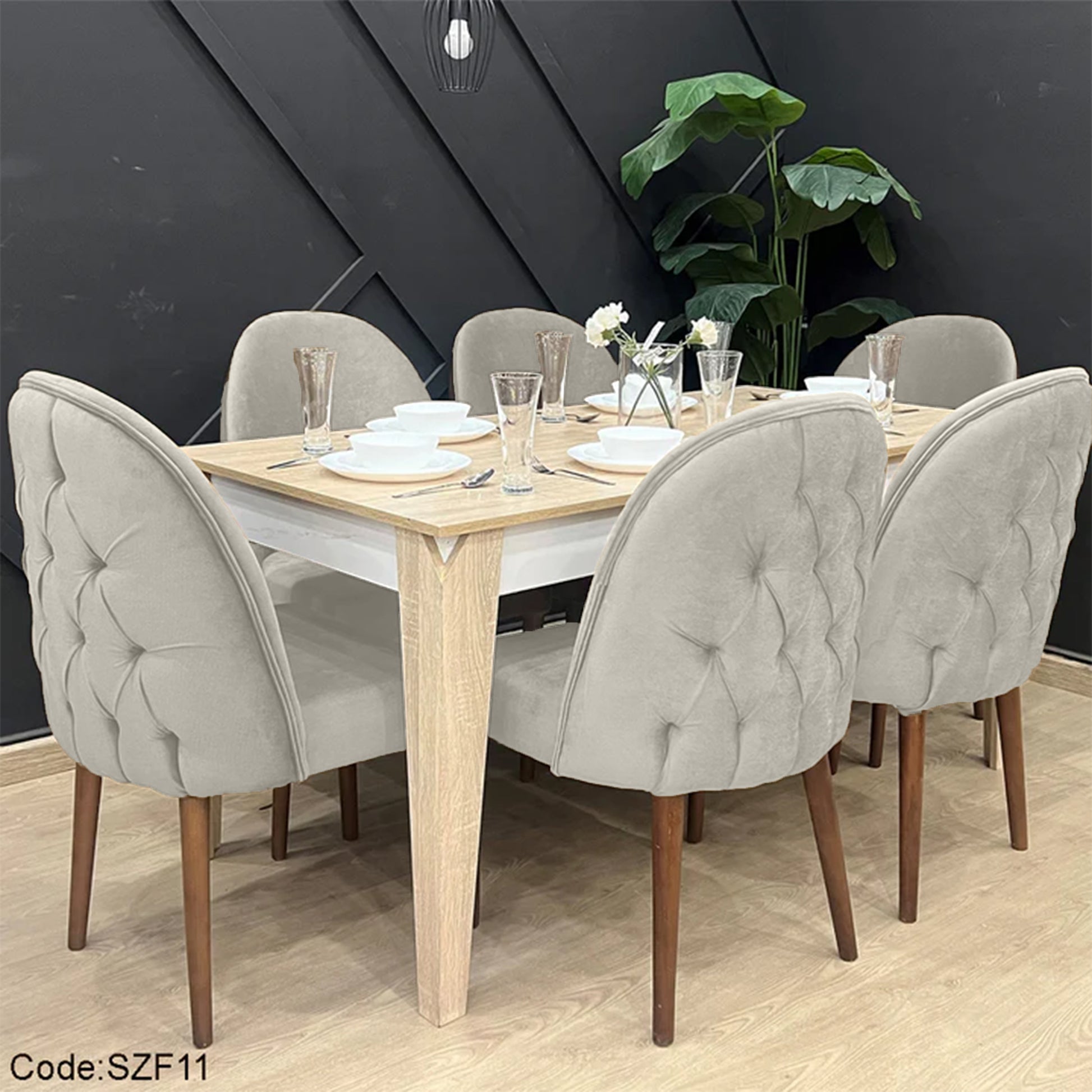 Modern Button-Tufted Dining Table with 6 Chairs