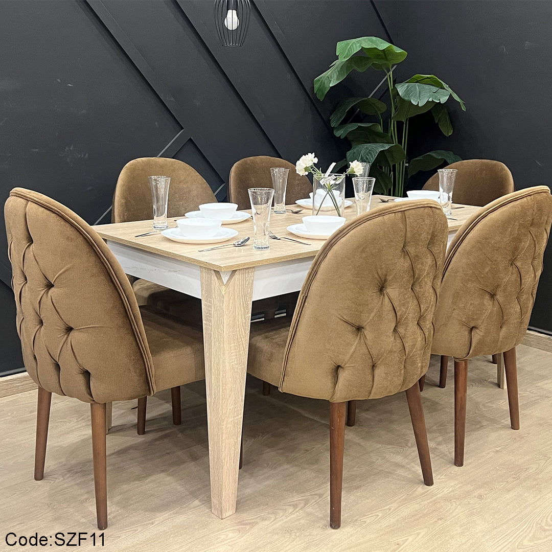 عدد القطع: 7 قطع (سفرة + 6 كراسي).