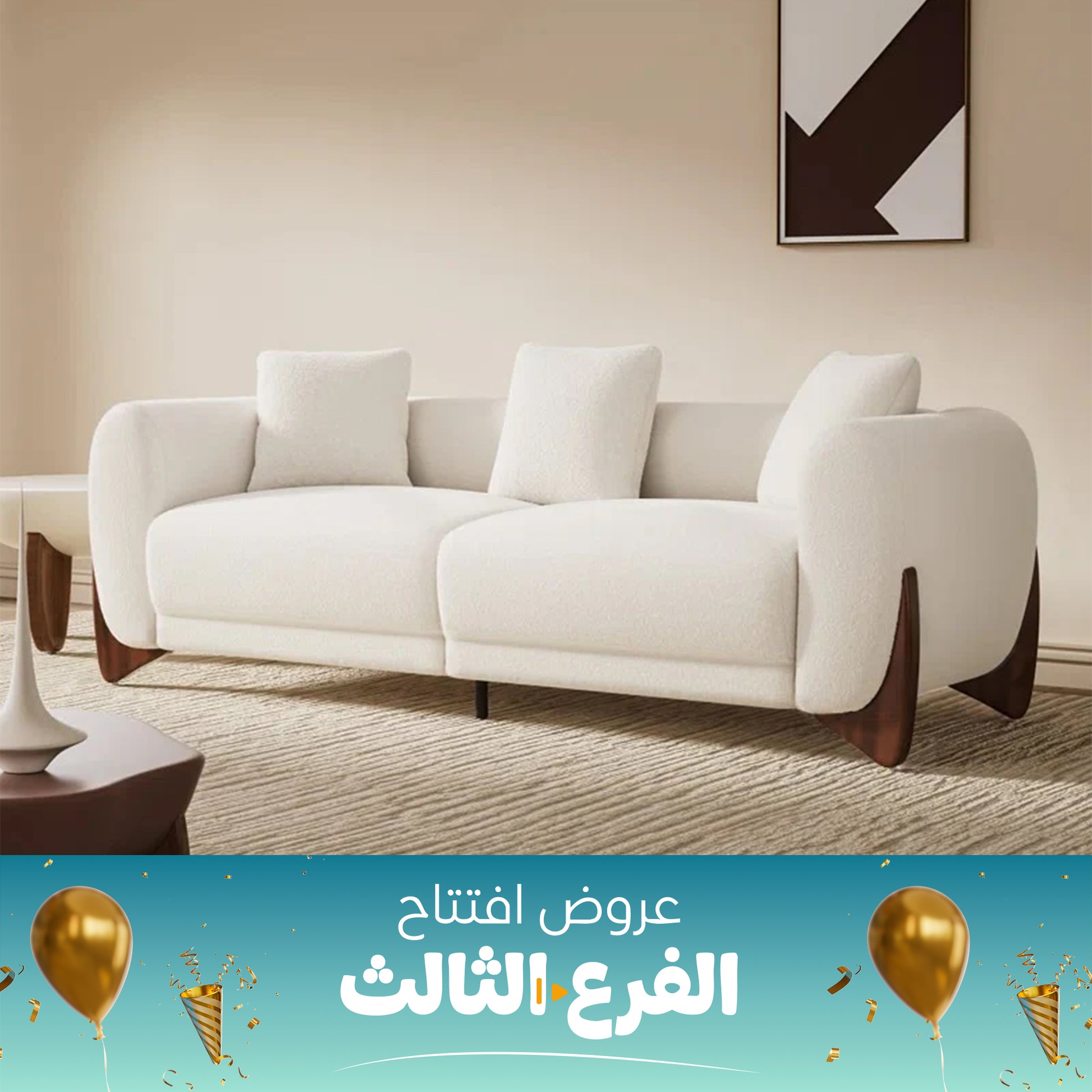 تتميز هذه الكنبة أولاً بجمال اللون الأوف وايت الذي يمنح الحيوية والاتساع لأي مساحة ويضفي لمسة ضوء هادئة وراقية. ثانياً يأتي التصميم العصري بخطوط منحنية وهندسية مذهلة تعكس الرقي والابتكار. حجم الكنبة الكبير يجعلها مثالية لجلسات عائلية مطولة أو استقبال الضيوف في الأوقات الخاصة.