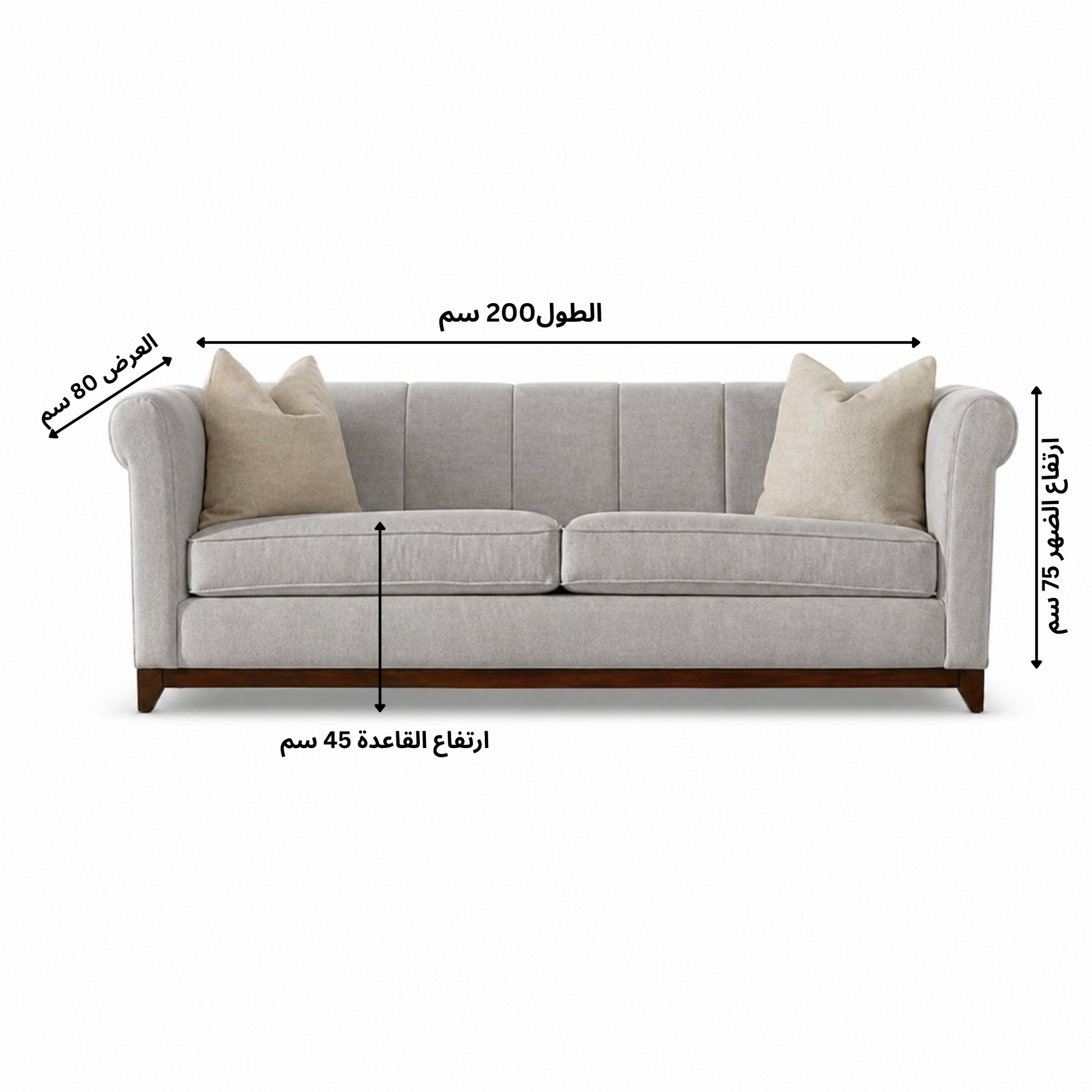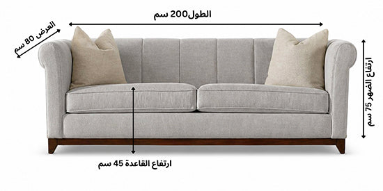 الأبعاد: الطول 200 سم، العرض 80 سم، ارتفاع القاعدة 45 سم، ارتفاع الظهر 75 سم.