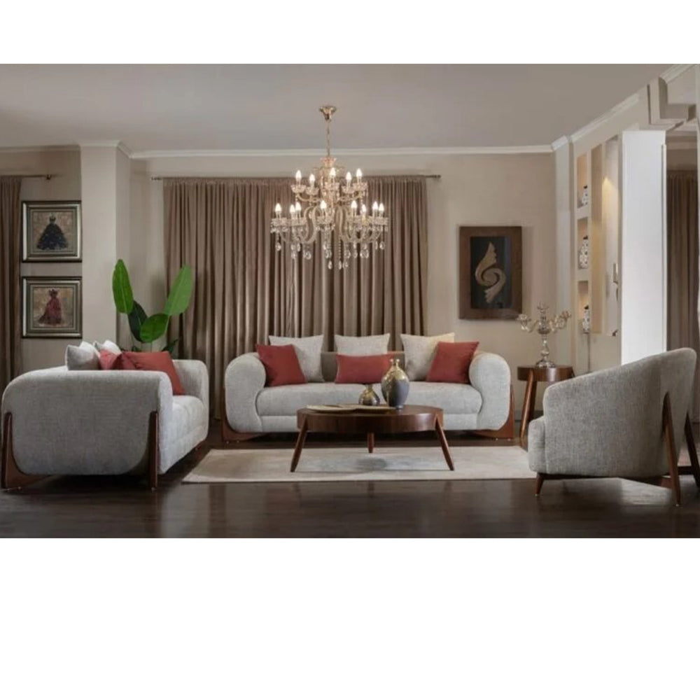 يتيح تعدد القطع (كنبتان بمقاسين مختلفين وكرسي منفصل) توزيعا متناسقاً في الفراغات الواسعة أو المتوسطة.