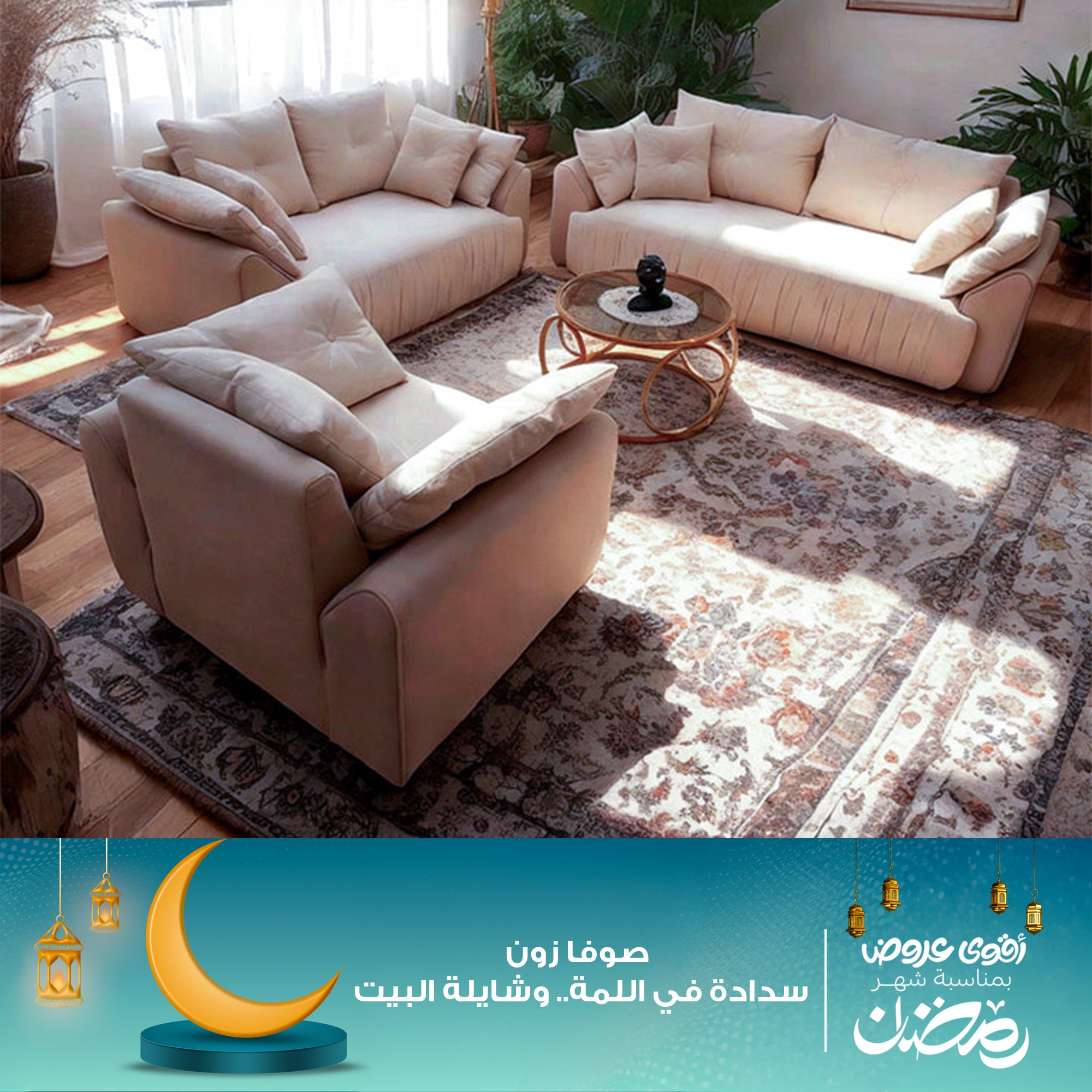 مقاس الكنبة (3 مقاعد): عرض 230 سم، عمق 90 سم، ارتفاع الظهر 70 سم، ارتفاع القاعدة 45 سم