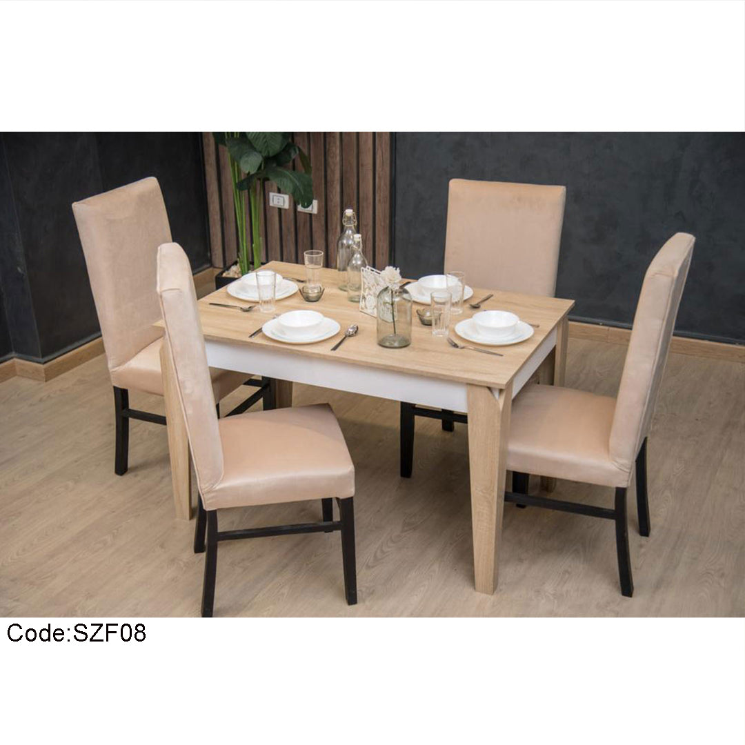 يقدم هذا الطقم المكون من خمس قطع حلاً عمليًا للمساحات المحدودة دون التخلي عن الطابع العصري. تصميمه البسيط يبرز من خلال استخدام خشب كونتر فرومايكا المتين، بينما تضيف الكراسي المغطاة بقماش القطيفة الناعم إحساسًا بالراحة طوال فترة الجلوس. يتيح هذا الطقم ترتيبًا مثاليًا لغرف الطعام الصغيرة، حيث يوفر الطول المدمج للطاولة مساحة كافية للاستمتاع بالوجبات اليومية. تأتي سفرة مودرن صغيرة بضمان ثلاث سنوات ضد عيوب التصنيع والخامات، إلى جانب مرونة في الدفع وخيارات الشحن في مدة زمنية واضحة.