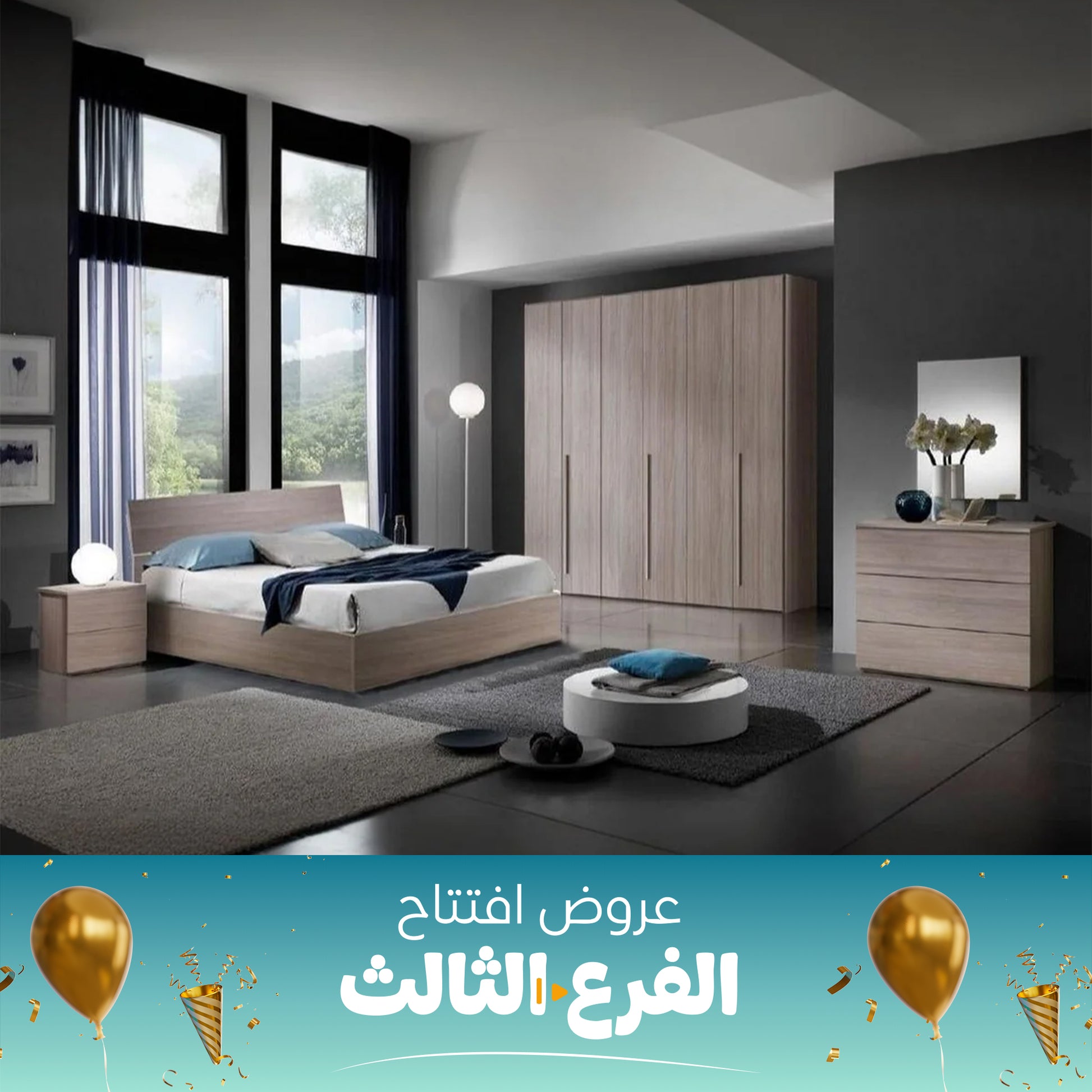 | عدد القطع | 5 (سرير + دولاب + 2 كومود + تسريحة) |