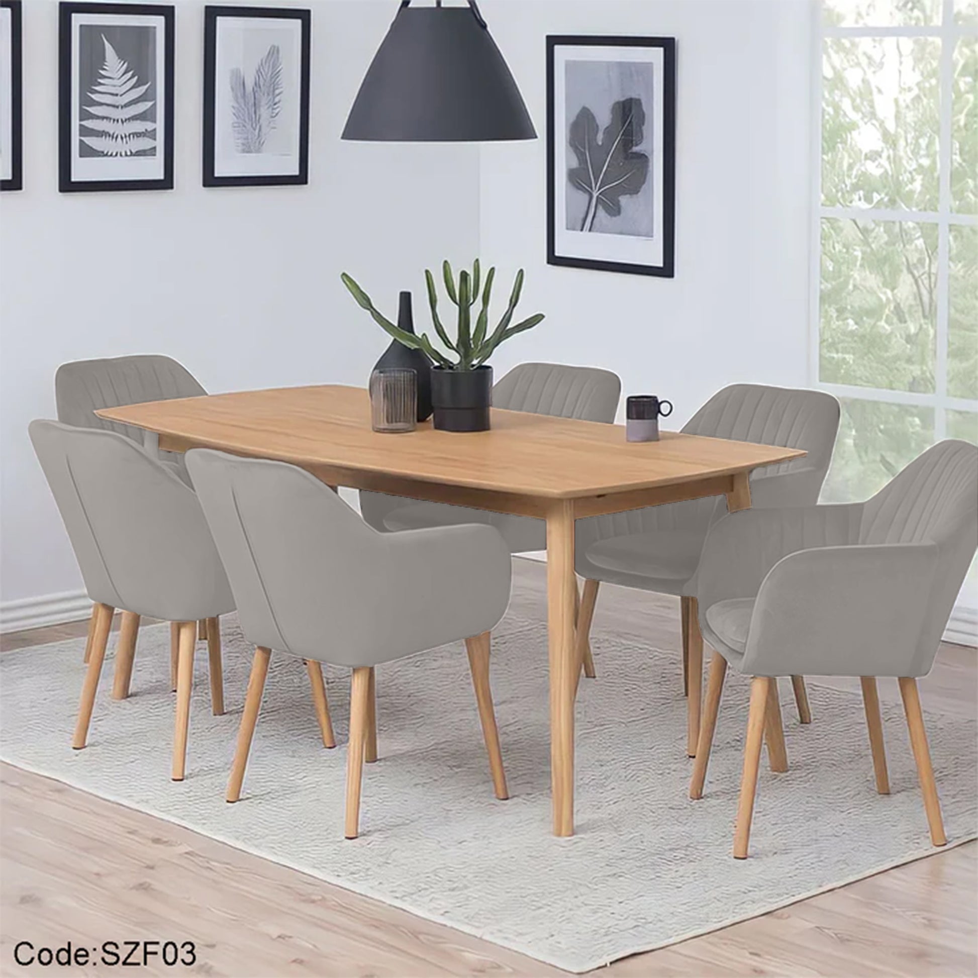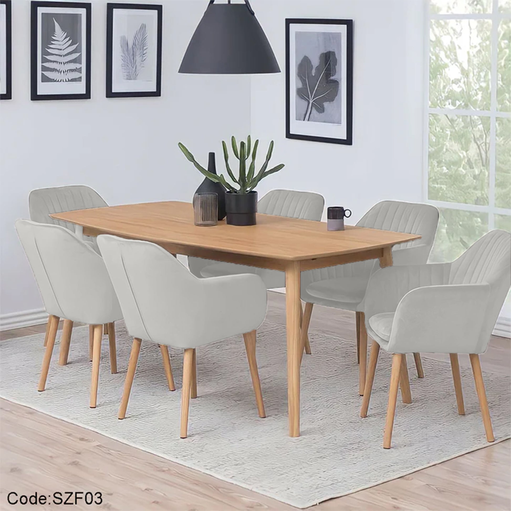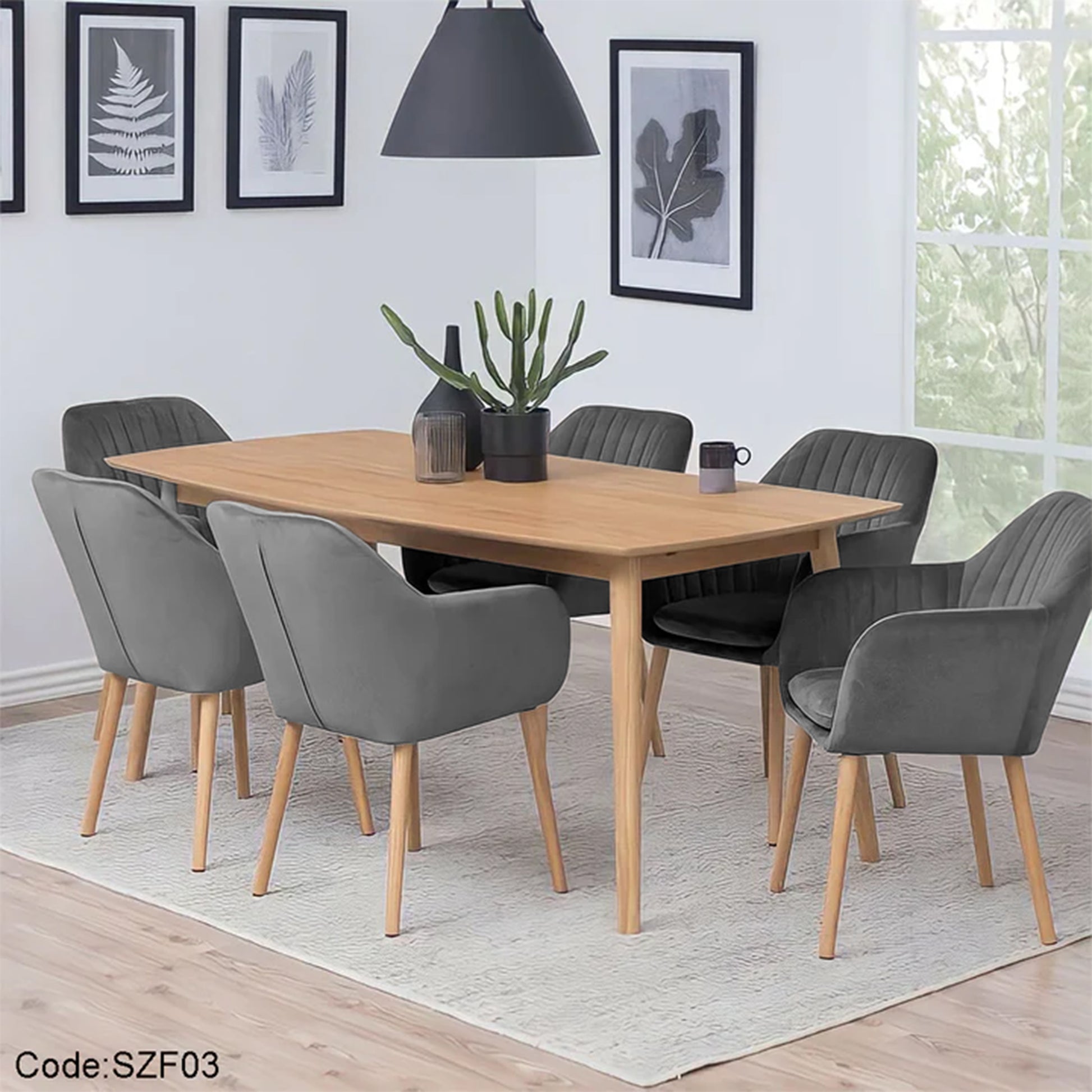 تمنحك مجموعة السفرة الخشبية المودرن تجربة تجمع بين العملية والذوق العصري، وتبرز ضمن قطع الأثاث المناسبة للأجواء العائلية والمناسبات الخاصة. يتكون الطقم من طاولة واسعة مع ستة كراسي سفرة مودرن خشب توفر راحة فائقة، ويعتمد تصنيعه على خامات قوية مثل الكونتر فرومايكا لضمان ثبات يدوم مع الاستخدام اليومي. ويمتاز كل كرسي بلمسة من القماش القطيفة الذي يعزز الشعور بالراحة ويضفي إحساسًا بالدفء لكل جلسة.