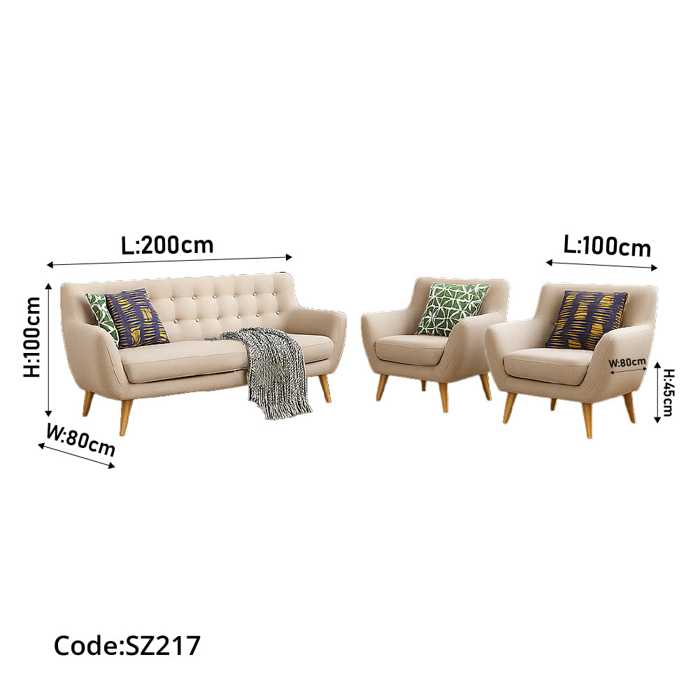عدد القطع: 3 قطع (كنبة متوسطة الحجم، كرسيان بأحجام مختلفة)