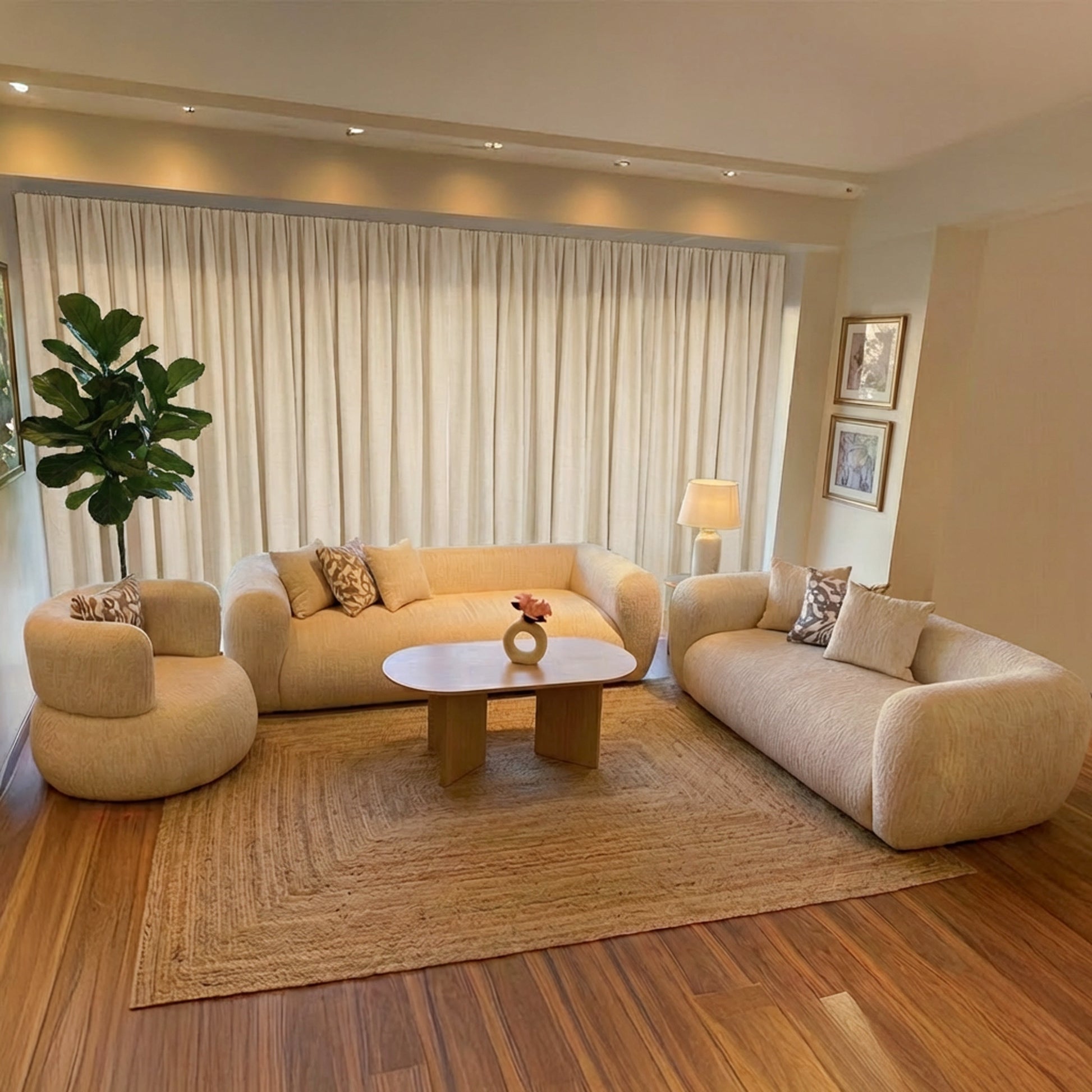 | عدد القطع | 3 قطع (2 كنبة + كرسي) |