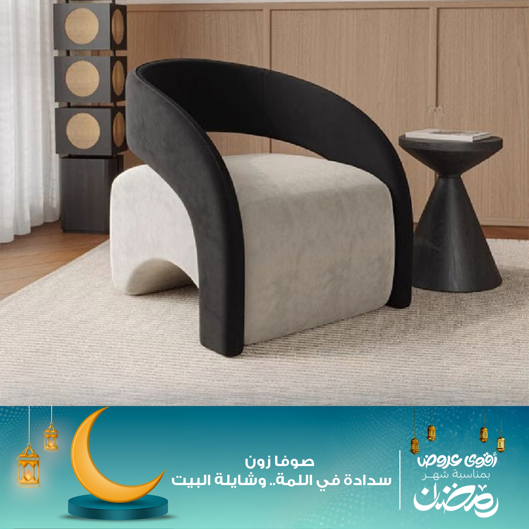 المزيج بين اللونين الأبيض والأسود يمنح الكرسي طابعًا أنيقًا يمكن دمجه مع أثاث مختلف بسهولة.